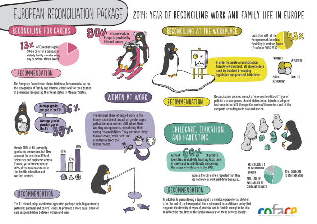 COFACE, la Confederazione delle organizzazioni familiari dell’Unione europea ha recentemente pubblicato l’European Reconciliation Package, un documento politico unico che mette in evidenza le diverse pratiche e politiche sviluppate a livello nazionale in Europa, in grado di sostenere le famiglie nel conciliare il lavoro e la cura della famiglia, offrendo una riflessione sulle sfide e le opportunità e raccomandazioni relative a ciò che può essere messo in campo a livello europeo e nazionale.
